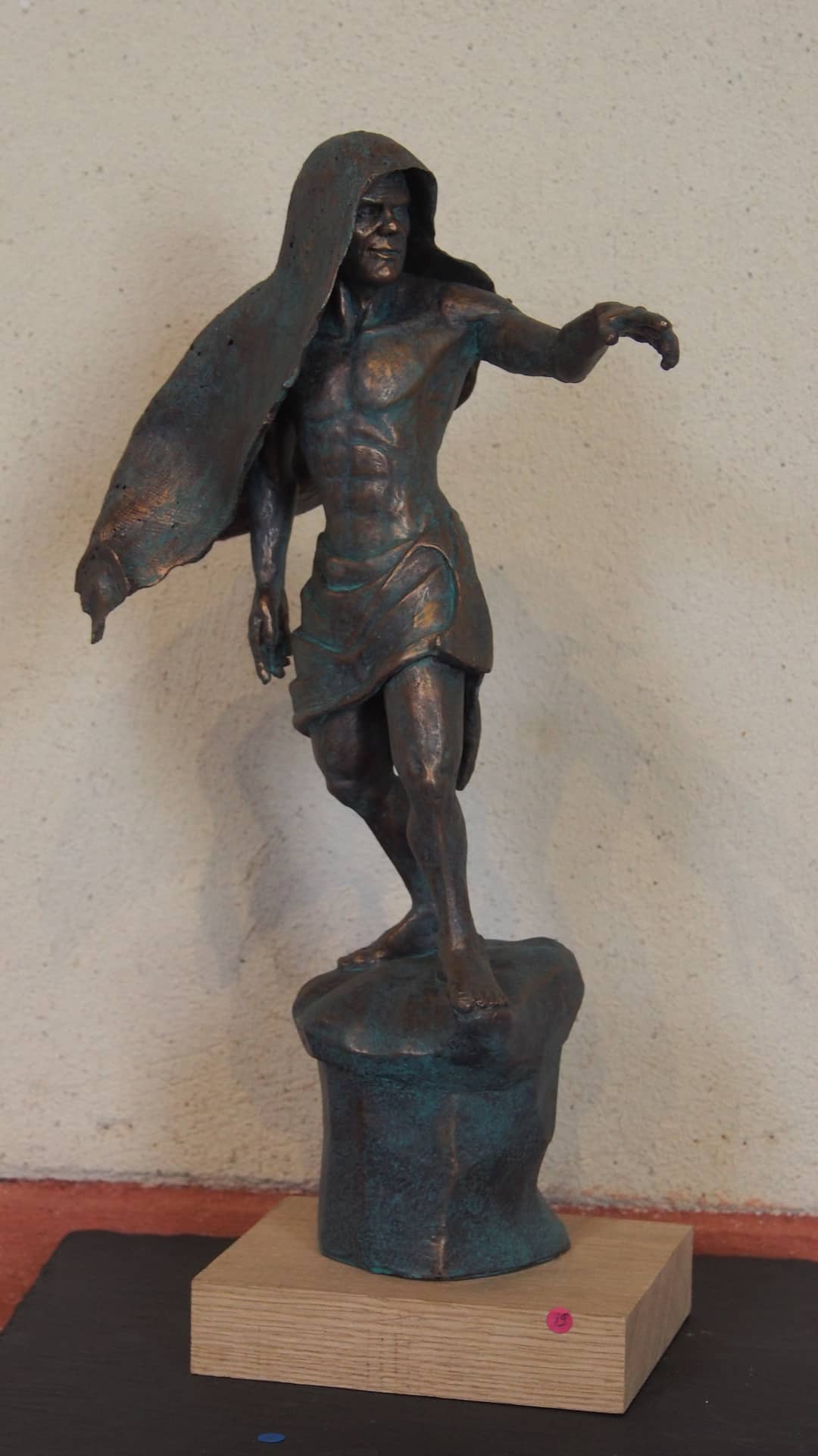 Ainsi, cette sculpture, par son regard vers l’avenir et sa cape ancrée dans le passé, illustre l’équilibre entre l’expérience accumulée et les conseils donnés, montrant que le véritable mentor offre non seulement sa sagesse passée mais aussi une perspective tournée vers l’avenir.